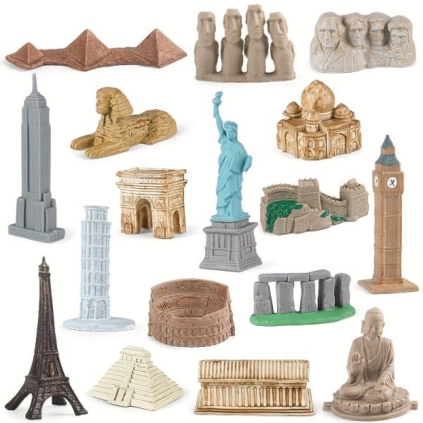Goodsright Decor 17pcs Baby Montessori Building Model, Simulation Landmark, Great Wall, Colosseum, Eiffel Tower, Education Toy, Gift For Halloween, Thanksgiving, Christmas