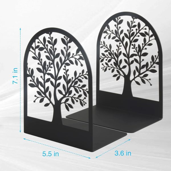 Goodsright Decor Metal Bookend, Tree of Life bookend for Shelves, Home Decorative Bookends for Heavy Books, Black Non-Skid Book Stopper, 7 x 5.5 x 3.5 inch (1 Pair)
